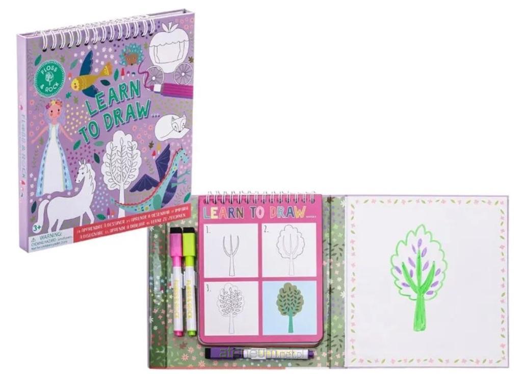Wspaniały zestaw do nauki rysowania dla dzieci w prosty i zabawny sposób zachęci dziecko do rozpoczęcia przygody z nauką rysowania. Zestaw zawiera 8 grubych, błyszczących stron, 3 kolorowe suchościeralne pisaki z gumkami oraz sekcję do rysowania i kolorowania. Sposób narysowania każdej ilustracji przedstawiony jest w trzech prostych krokach, dzięki czemu nauka rysowania będzie dla każdego malucha łatwa i przyjemna. Zmazywalne strony pozwalają trenować bez końca. Zestaw składa się na płasko, posiada praktyczne magnetyczne zamknięcie i idealnie sprawdzi się w podróży. Zapraszamy do zabawy! Cechy: