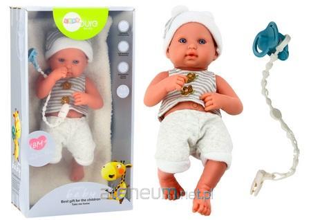 Lalka Bobas w Biało-Szarym Ubranku Czapeczka Smoczek Kołderka Lalka bobas w Biało-Szarym ubranku to więcej niż tylko zabawka - to towarzyszka, która wprowadza dzieci w magiczny świat wyobraźni i opiekuńczych przygód. Jej urocze Biało-Szare body i dopasowana czapeczka nadają jej niepowtarzalny urok. Ruchome rączki i nóżki umożliwiają dziecku interaktywną zabawę, rozwijając jego zdolności manualne i kreatywność. Wykonana z najwyższej jakości, bezpiecznych materiałów, lalka posiada realistyczne rysy twarzy, dzięki czemu wygląda jak prawdziwe niemowlę, co dodaje autentyczności i głębi do dziecięcych doświadczeń. Dodatkowo, obecność smoczka na sznurku i mięciutkiej kołderki dodają realizmu i zachęcają do tworzenia różnorodnych scenariuszy zabawy. Ta lalka nie tylko bawi, ale również rozwija empatię i odpowiedzialność u dzieci, ucząc je troski i opieki nad innymi. Daje możliwość przeżywania magicznych chwil, w których dzieci mogą się czuć jak prawdziwi opiekunowie, budując silne więzi emocjonalne i rozwijając swoje umiejętności społeczne. Towarzyszka, która nie tylko bawi, ale także inspiruje i wspiera w rozwoju dziecięcej wyobraźni i kreatywności. Wymiary lalki: 35cm cm x 16cm x 10cm Wymiary opakowania: 43cm x 24cm x 14cm Posiada certyfikat CE, ponadto jest zgodny z normą EN71. Przeznaczony dla dzieci od 18 miesiąca życia.
