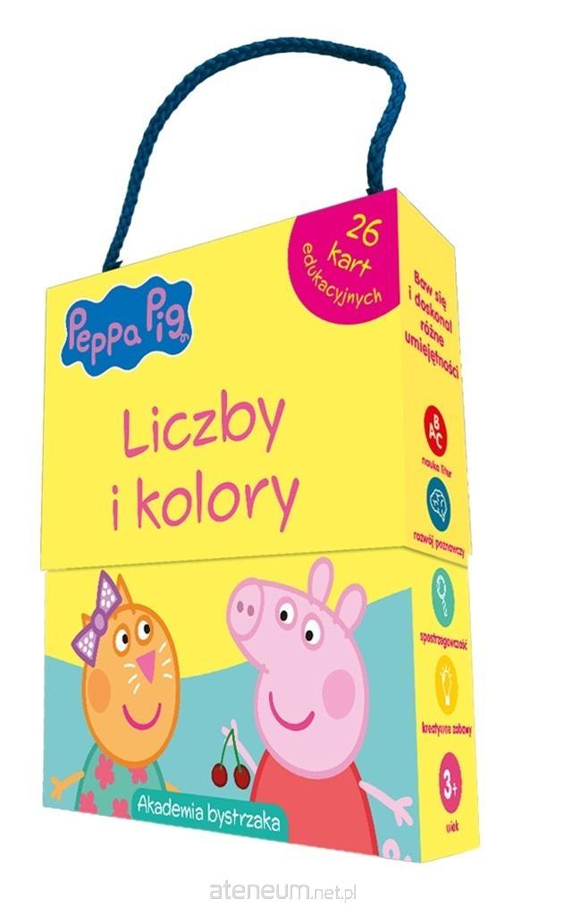 Oto 26 kart obrazkowych, dzięki którym maluch pozna liczby i kolory. Będzie przygotowywał się do nauki liczenia i ćwiczył spostrzegawczość, a wszystko to w towarzystwie Świnki Peppy, która od lat bawi i uczy dzieci na całym świecie.