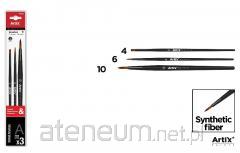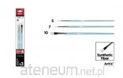 Profesjonalny pędzel do malowania z bardzo miękkiego włosia syntetycznego. Idealny do farb temperowych,olejnych lub akrylowych. Drewniany korpus lakierowany na czarno. Długość: 20,5 cm. Blister zawierający 4 sztuki: trzy z płaskimi skuwkami(1 koci język nr 15, 1 płaski nr 12 i jeden płaski wentylator) oraz 1 okrągła skuwka nr 10.
