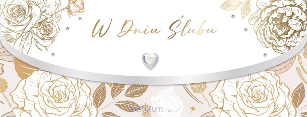 Luksusowy karnet Ślubny z elementami złocenia lub srebrzenia, wykonany na specjalnym, grubym kartonie z licznymi dodatkami.
