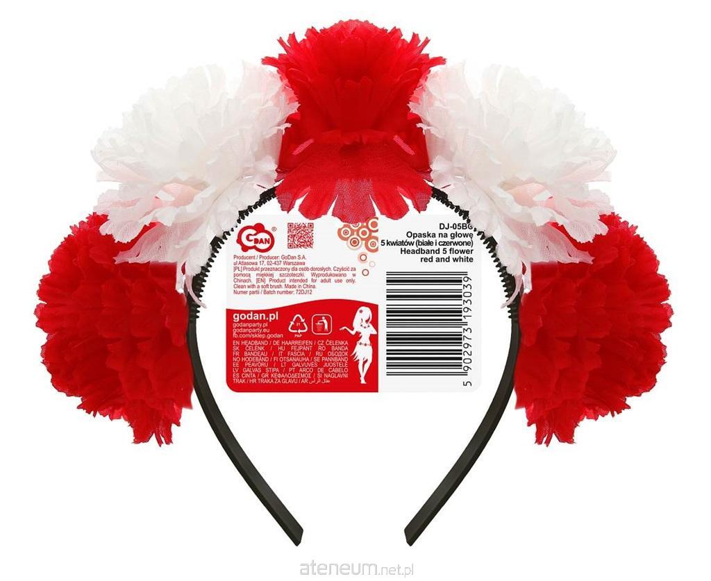 Opaska na głowę 5 kwiatów (białe i czerwone)