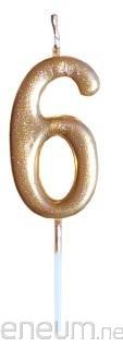 Świeczka urodzinowa metaliczna złota SH-719-6 Cyferka "6"