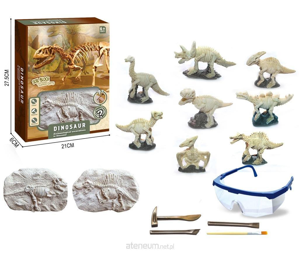 Zestaw zawiera gipsowy odlew z którego za pomocą narzędzi należy wydobyć szkielet dinozaura, świetny zestaw, który pozwoli dziecku poczuć się jak naukowiec paleontolog.