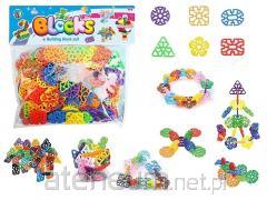 Zestaw klocków konstrukcyjnych umożliwiających budowanie przestrzennych budowli.
