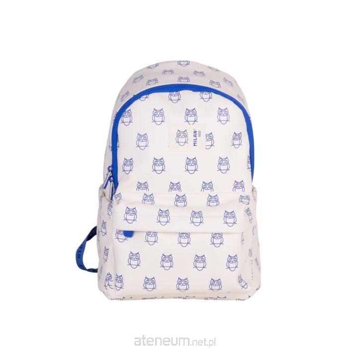 Plecak dziecięcy w rozmiarze mini. Beżowy kolor z granatowym wzorem w sowy. Kolekcja 460 inspirowana oryginalnymi kolorami i wzornictwem gumek MILAN, produkowanych w Hiszpanii od 1918 roku. Główna i przednia komora z zamkiem błyskawicznym. Dwie boczne kieszenie na butelki lub małe przedmioty. Regulowane paski na ramię i regulowane paski z przodu w jaskrawym niebieskim kolorze. Niebieska wzorzysta podszewka wewnętrzna. Skład materiału: 100% poliuretanowa tkanina zewnętrzna i 100% poliestrowa podszewka wewnętrzna. Wymiary: 33 x 25 x 18 cm. Pojemność: 9,5 l