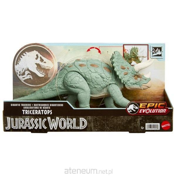 Każda figurka dinozaura Jurassic World Gigantyczny tropiciel jest gotowa do dzikiego ataku aktywowanego elementem obrotowym. Wszystkie mają też ewolucję bojową, taką jak kolce wydłużane jednym naciśnięciem przycisku czy drugi zestaw rogów. Te duże dinozaury mają imponujący rozmiar (około 35,5 cm długości i 17,5 cm wysokości), autentyczny wygląd i różnorodne dekoracje dostosowane do środowiska naturalnego. Wystarczy zeskanować kod tropiący w bezpłatnej aplikacji Jurassic World Play za pomocą kompatybilnego smartfona/tabletu (z Androidem lub iOS, nie znajduje się w zestawie), aby odkryć funkcje i gry w rzeczywistości rozszerzonej. Kolory i elementy dekoracyjne mogą się różnić.