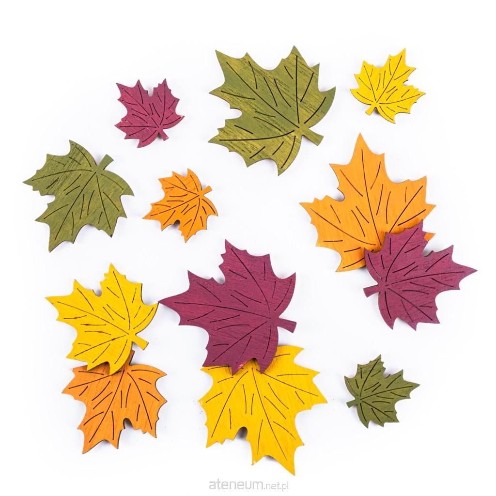 Drewniane liście klonu w trzech rozmiarach i czterech jesiennych kolorach - bordowym, żółtym, zielonym i pomarańczowym. Nie wymagają dodatkowego zdobienia i malowania, dzięki czemu ułatwiają wykonanie efektownych projektów DIY.