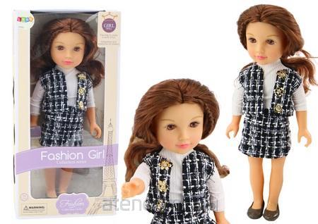 Lalka W Eleganckim Ubranku W Kratę Brązowe Włosy 18' Piękna lalka w długich brązowych włosach i eleganckim ubranku to idealny towarzysz zabaw dla każdej dziewczynki, która marzy o kreowaniu modnych stylizacji i tworzeniu wyjątkowych fryzur. Jej długie, gęste brązowe włosy są doskonałe do czesania i stylizowania, pozwalając dzieciom na wyrażanie swojej kreatywności poprzez tworzenie różnorodnych fryzur, od prostych warkoczy po skomplikowane upięcia. Lalka ubrana jest w stylowy zestaw, który łączy elegancję z nowoczesnym stylem. Jej spódnica i kamizelka w czarno-białą kratkę nadają jej modny wygląd, idealny na każdą okazję. Pod kamizelką lalka nosi białą bluzeczkę z długim rękawem, która dodaje całości klasycznego i ponadczasowego charakteru. Każdy element stroju został starannie zaprojektowany i wykonany z dbałością o detale, co sprawia, że lalka wygląda wyjątkowo elegancko i stylowo. Ubranko lalki nie tylko przyciąga wzrok, ale jest także funkcjonalne - dzieci mogą łatwo zdejmować i zakładać poszczególne części garderoby, co dodatkowo rozwija ich zdolności manualne i koordynację ruchową. Elegancki strój i długie, piękne włosy sprawiają, że lalka jest idealnym wyborem do odgrywania różnorodnych scenariuszy, od codziennych przygód po wyjątkowe okazje, takie jak przyjęcia czy pokazy mody. Piękna lalka w długich brązowych włosach i eleganckim ubranku to doskonały prezent dla każdej dziewczynki, która ceni sobie zabawki łączące estetykę z funkcjonalnością. Dzięki wysokiej jakości wykonania i dbałości o detale, lalka ta z pewnością stanie się ulubionym towarzyszem zabaw i ważnym elementem dziecięcej kolekcji. Wymiary lalki: 44cm x 18cm x 10cm Wymiary opakowania: 48cm x 24cm x 12,5cm Posiada certyfikat CE, ponadto jest zgodny z normą EN71. Przeznaczony dla dzieci powyżej 3 roku życia.