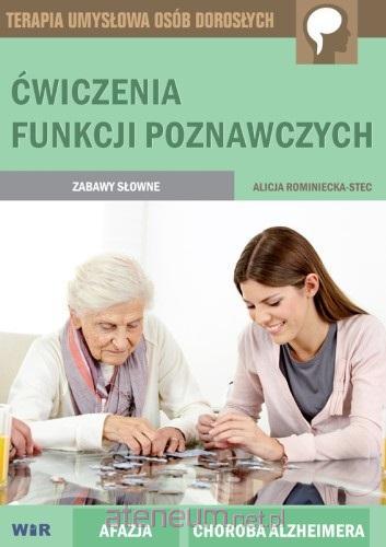Seria trzech zeszytów pt. Ćwiczenia funkcji poznawczych została przygotowana z myślą o pacjentach dorosłych, którzy w wyniku afazji, choroby Alzheimera i innych chorób otępiennych utracili część funkcji poznawczych: umiejętność nazywania, powtarzania, rozumienia, orientacji w czasie, przestrzeni i pamięć. Ćwiczenia są odpowiednie również dla osób zdrowych, które chcą jak najdłużej cieszyć się sprawnością umysłową i zapobiec skutkom starzenia się organizmu: problemom z pamięcią, koncentracją, uwagą oraz zespołem otępiennym. Część trzecia to zabawy słowne. Zeszyt obejmuje materiał językowy zaprezentowany w postaci licznych anagramów, wykreślanek, ćwiczeń pamięci, ćwiczeń twórczego myślenia i budowania zdań. Zadania mają na celu wzbogacić słownictwo, stymulować pamięć, wyobraźnię, koncentrację i uwagę. U osób chorych usprawniają zaburzone funkcje poznawcze, a u zdrowych osób stymulują je, zapobiegają chorobom otępiennym oraz pomagają utrzymać umysł na wysokim poziomie, mimo procesów starzenia się organizmu. W serii ponadto: Ćwiczenia funkcji poznawczych. Czasowniki, przymiotniki, przyimki Ćwiczenia funkcji poznawczych. Rzeczowniki