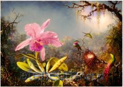 Puzzle 1000 Orchidea Cattleya i trzy kolibry