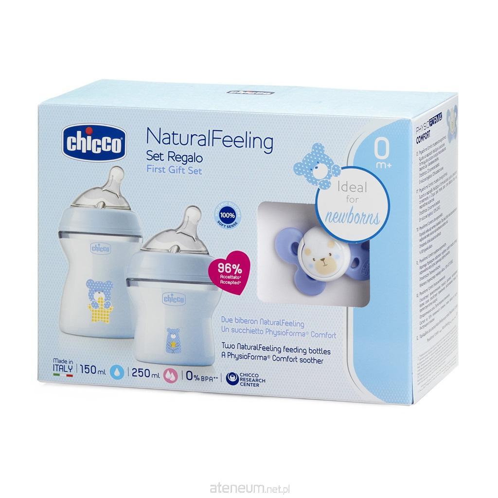 W skład zestawu wchodzą: 2 butelki z linii NaturalFeeling o pojemności 150 i 250 ml o przepływie odpowiednio wolnym i średnim, które podążają za naturalnym sposobem ssania dziecka i ułatwiają karmienie naprzemienne; fizjologiczny smoczek Physioforma Comfort wspomagający prawidłowy rozwój jamy ustnej SMOCZKI W BUTELKACH CHICCO NATURALFEELING PODĄŻAJĄ ZA NATURALNYM, ZMIENIAJĄCYM SIĘ SPOSOBEM SSANIA DZIECKA, DZIĘKI CZEMU WSPIERAJĄ KARMIENIE NAPRZEMIENNE Delikatny materiał z miękkiego silikonu z aksamitną powłoką "mum effect" zapewnia jeszcze bardziej naturalne odczucia w trakcie ssania. Dzięki temu karmienie przebiega w sposób najbardziej zbliżony do naturalnego, a dziecko nie ma problemu z powrotem do karmienia piersią. 2 zawory antykolkowe zapobiegają połykaniu powietrza, a w efekcie przeciwdziałają kolkom. Nie zawierają BPA PHYSIOFORMA COMFORT - silikonowy smoczek uspokajający Jest ergonomiczny i komfortowy, posiada tylko 4 punkty styku z buzią dziecka. Wykonany jest z delikatnego silikonu, który jest materiałem higienicznym, trwałym, odpornym na odbarwienia i zapachy. Tarczka smoczka ma ergonomiczny kształt, który zapewnia odpowiednio dużo miejsca na nos i brodę dziecka. Tarczka styka się z buzią dziecka tylko w czterech punktach, dzięki czemu zapewnia dobrą wentylację i zapobiega powstawaniu podrażnień na buzi dziecka. PHYSIOFORMA TO WYJĄTKOWY KSZTAŁT WSZYSTKICH SMOCZKÓW CHICCO Kształt PhysioForma wspiera prawidłowe ułożenie języka w jamie ustnej dziecka - wysunięcie go do przodu i do góry, przy zamkniętych ustach. Takie ułożenie języka wspomaga fizjologiczne otwarcie górnych dróg oddechowych, dzięki czemu wspiera fizjologiczne oddychanie (przez nos). Fizjologiczne oddychanie jest niezwykle ważne dla prawidłowego rozwoju dziecka. Ułożenie języka w jamie ustnej ma również ogromne znaczenie dla kształtowania się podniebienia i tworzenia miejsca na pierwsze zęby dziecka. Kształt PhysioForma to wynik współpracy między Centrum Badawczym Osservatorio Chicco, doświadczonymi pediatrami oraz Włoskim Towarzystwem Ortodoncji.
