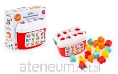Kostka z elastycznymi ściankami kryje w swym wnętrzu całą gromadkę kolorowych klocków! Ta inspirująca zabawka pozwoli najmłodszym odkrywcom poznać różnice pomiędzy poszczególnymi kształtami klocków, ich kolorem, a także fakturą. Poza stymulowaniem zmysłu wzroku i dotyku, zabawka oddziałuje także na zmysł słuchu maluchów, a to za sprawą grzechotania, które bobas usłyszy za każdym razem, gdy potrząśnie którymś z klocków. Dzięki temu, że sznureczki, tworzące ścianki kostki, są elastyczne, klocki można do woli wkładać do zabawki i wyciągać je na zewnątrz.