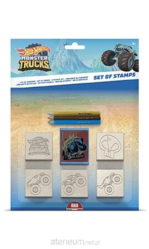 W skład zestawu wchodzi: 5 pieczątek, 1 poduszeczka do tuszu oraz 3 kredki.