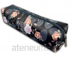 Piórnik prostokąt róże w czerni