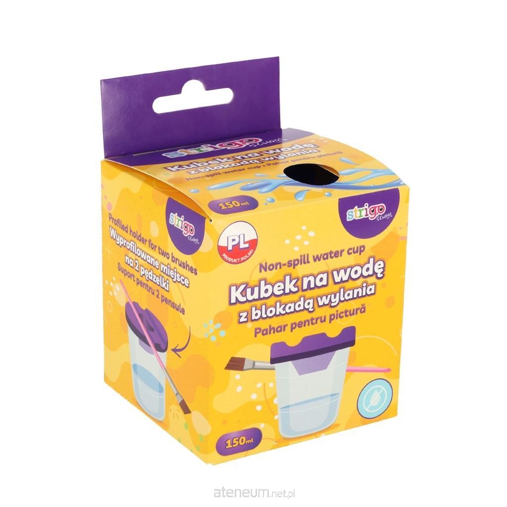 Kubek na wodę do płukania pędzli. Posiada specjalną pokrywkę z blokadą wylania, która uniemożliwia wylanie wody w przypadku przewrócenia się kubeczka. Dla wygody, pokrywa kubka posiada miejsca na odłożenie pędzli. Idealne rozwiązanie dla najmłodszych artystów. Dostępny w trzech wersjach kolorystycznych: niebieski, żółty, zielony.