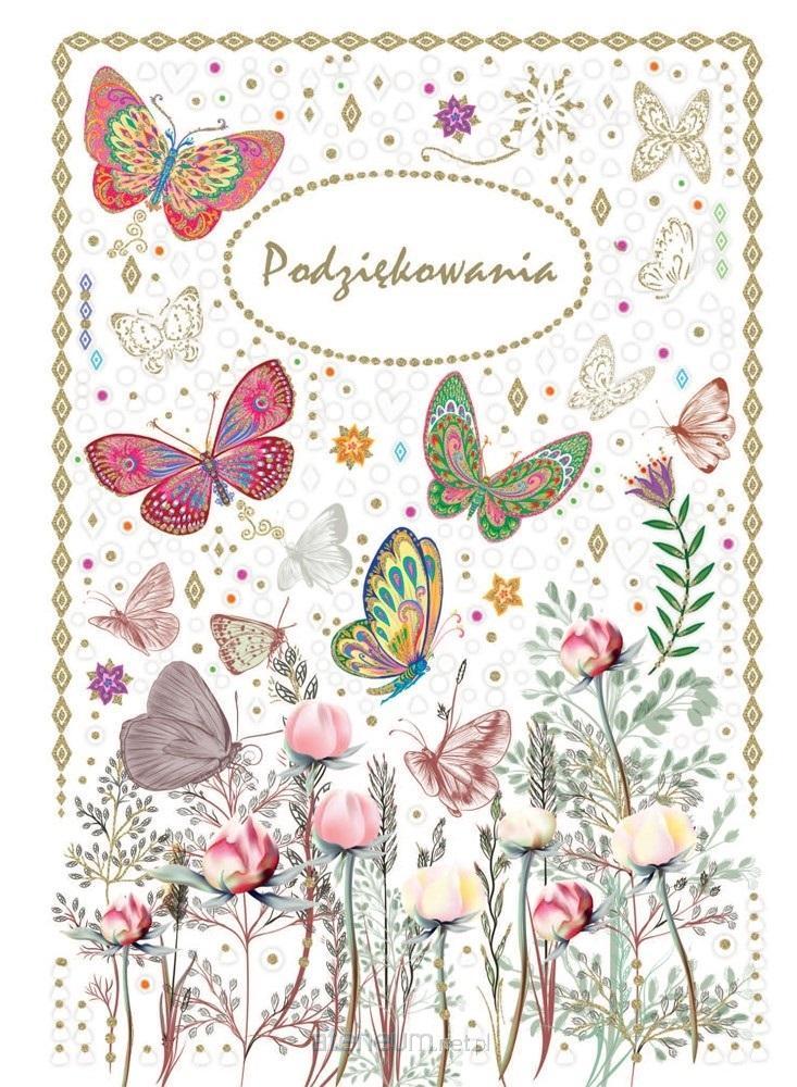 Karnet B6 brokat z kopertą Dziękuję Kwiaty