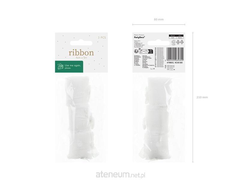 Wstążka szyfonowa w kolorze białym, szerokość ok. 40 mm, długość ok. 5 m.(1 op. / 3 szt.)
