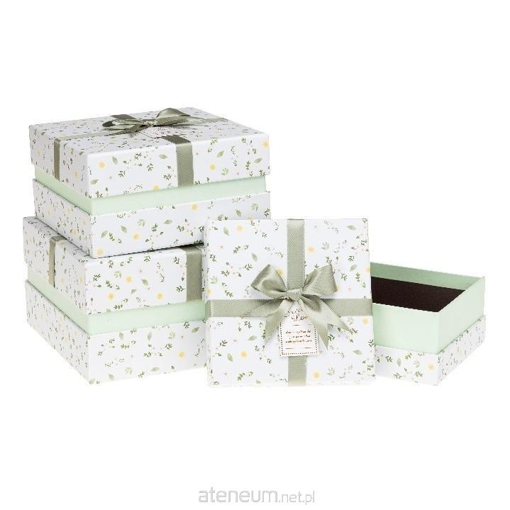 Zestaw pudełek prezentowych 3sz, motyw biało-zielony z drobnymi listkami