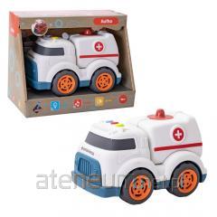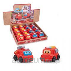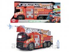 Straż pożarna na baterie. Efekty dźwiękowe oraz światła. Wysuwana drabina, zakończona psikawką z której można pryskać wodą. Otwierane drzwi od kabiny oraz otwierane boczne szare drzwi, pod którymi znajduje się sprzęt strażaka. Wymagane baterie - 3xAG13 (dołączone).