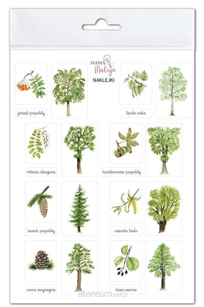 Wszystkie gatunki zawierają podpisy, dzięki czemu nikt nie będzie miał problemów w ich rozróżnianiu. Na odwrocie arkusza znajduje się wykaz przedstawionych na naklejkach drzew i ich owoców.
