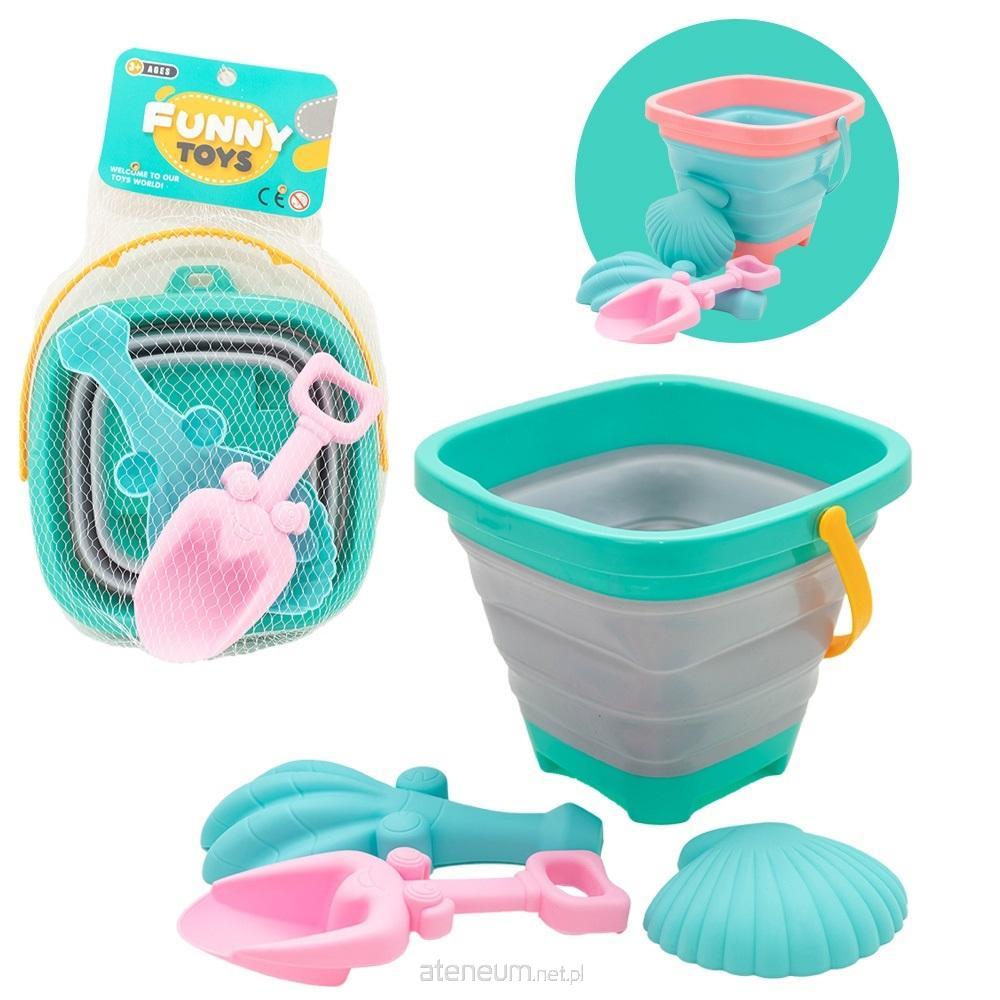 Zestaw do piasku - 4 elementy: składane wiaderko 15cm, 2 łopatki, foremka