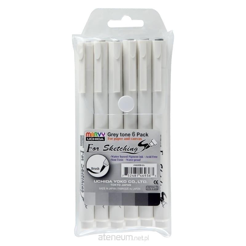 Długopisy pigmentowe na bazie wody z miękkimi, gładkimi końcówkami pędzelka do projektowania dzieł sztuki. Idealny do szkiców, precyzyjnych detali, sztuki, projektowania, grafiki, kaligrafii, ilustracji, mediów mieszanych i nie tylko, do efektownej pracy na papierze lub płótnie. Nadaje się do łączenia z markerami na bazie alkoholu. Nie smaruje, nie spływa, nie rozlewa się. Długopisy Marvy Uchida "For Sketching" są wypełnione bez-kwasowymi, nieszkodliwymi atramentami na bazie wody, które są bardzo odporne na wodę i blaknięcie, szybko schną. Zestaw zawiera sześć różnych odcieni brązu.