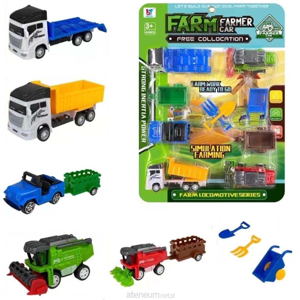 Zestaw pojazdów rolniczych wraz z akcesoriami.