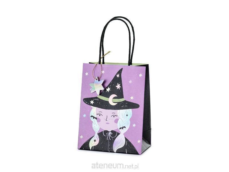 Torebka na prezenty Czarownica mix kolorów i zawieszka w kształcie gwiazdy, wymiary bez uchwytów ok. 8 x 14 x 18 cm.