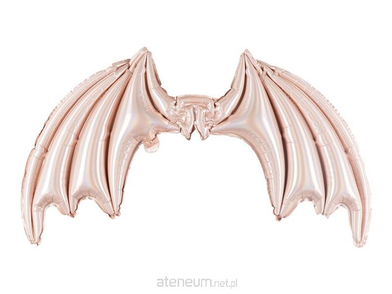 Balon foliowy w kształcie skrzydeł nietoperza, ze sznurkami do przywiązania do pleców, kolor różowy holograficzny, wym. ok. 85 x 50 cm. Do napompowania powietrzem. Zestaw zawiera słomkę.