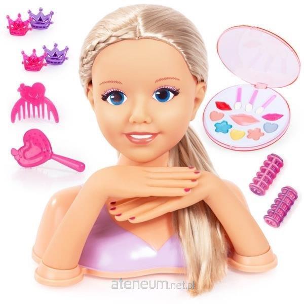 Dzięki głowie do stylizacji (25 cm) możesz przekształcić każdy pomysł na stylizacje w rzeczywistość. Możesz wypróbować wiele różnych fryzur. Dołączamy pędzel, grzebień, spinki do włosów i lokówki. Bardzo się przydadzą, aby idealnie ułożyć włosy. Aby uzyskać efektowny wygląd, nie można przegapić wspaniałego makijażu! Z jej urocza twarzą, fryzjerska głowa jest prawdziwa pięknością. Ręce można obrócić w stronę dziecka. Można również poruszać sama głowa. Idealna do kreatywnej zabawy i ćwiczenia zręczności.