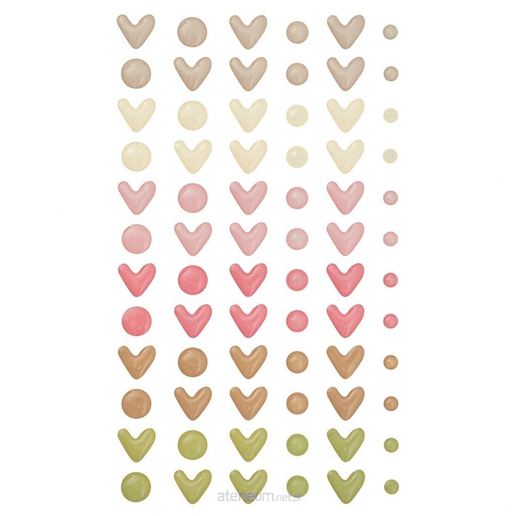 Emaliowane, samoprzylepne serduszka i kropki w odcieniach beżu, oliwki i różu, to wyjątkowy dodatek do wszelkich prac typu cardmaking, scrapbooking, home decor i wielu innych.