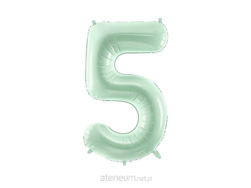 Balon foliowy Cyfra ''5'' w kolorze zielonym, rozmiar przed napompowaniem ok. 86 cm (34''), rozmiar po napompowaniu ok. 72 cm (28''). Do napompowania powietrzem i helem. Zestaw zawiera słomkę