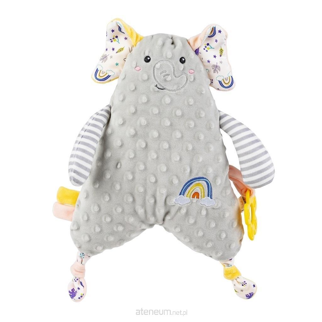 Mięciutki słonik stworzony specjalnie do tulenia! Zabawkę zdobi doczepiony gryzaczek w kształcie kwiatka, materiałowe metki oraz para kolorowych supełków, imitujących nóżki zwierzaka. Ciałko słonia uszyte jest z materiałów różniących się fakturą, a jego brzuszek zdobi piękny haft. Dzięki tym zróżnicowanym powierzchniom, zabawka stymulować będzie zmysły maluszka, pomagając mu w rozwijaniu zdolności poznawczych i zachęcając go do sensorycznego poznawania świata.