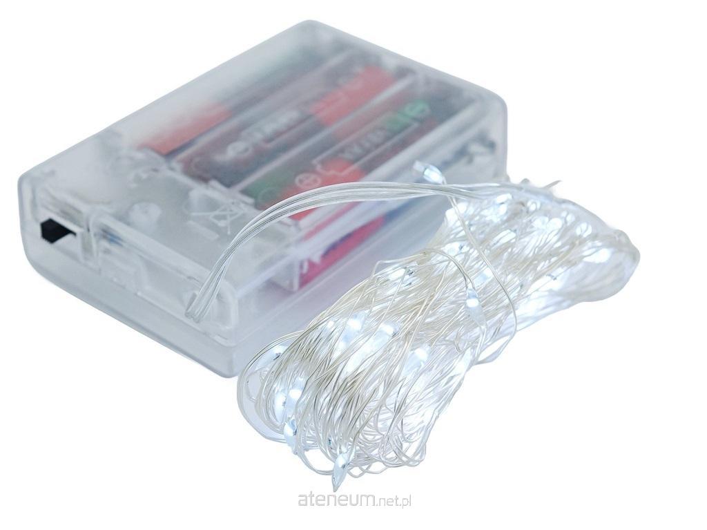 łańcuch 10m z lampkami LED, biały, na baterie 3xAA niedołączone;