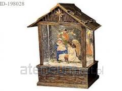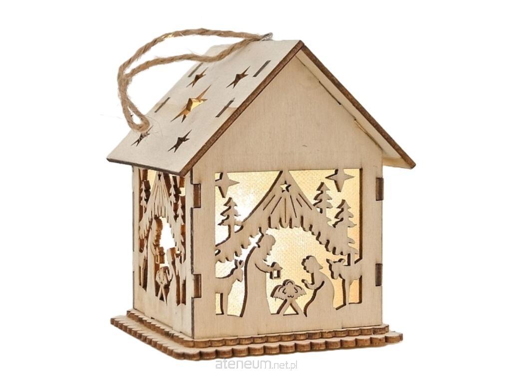 lampka LED, stajenka, z motywem świątecznym, drewniana; 11x9x9cm