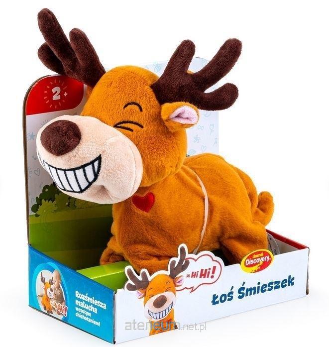 Uroczy wesołek zanosi się śmiechem, wierzgając przy tym raciczkami, stając na dwóch nogach i wykonując zabawne ruchy, a wszystko po to, aby rozśmieszyć malucha. Zwierzaczek posiada z boku, pod pyszczkiem, czerwone serduszko, odpowiedzialne za uruchamianie zabawki. Obserwuj śmiechowe popisy łosia i zaraź się od niego wesołością!