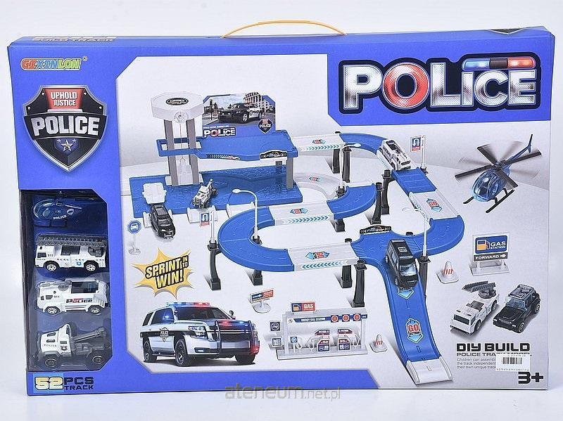 parking policyjny, 52 części, 4 pojazdy metalowe; 52x35x7cm, W/B