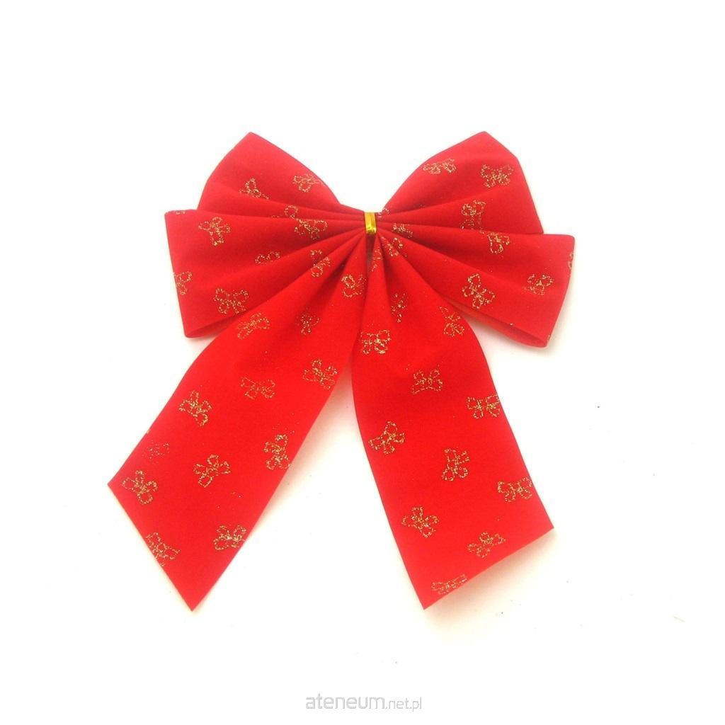 Duża kokarda dekoracyjna w kolorze czerwonym. Idealnie sprawdzi się w kompozycjach dekoracyjnych, świątecznych jak i do dekoracji prezentów. Ozdoba świąteczna o wymiarze: 15 x 23 cm.