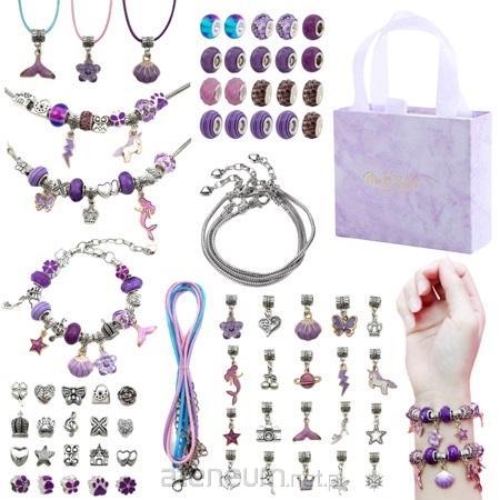 Podaruj swojemu dziecku niezapomniane chwile kreatywnej zabawy z zestawem do tworzenia naszyjników i bransoletek charms! Ten uroczy zestaw to idealny sposób na rozwijanie wyobraźni i zdolności manualnych, umożliwiając tworzenie unikalnych, osobistych ozdób. Zestaw zawiera różnorodne zawieszki, koraliki i charmsy, dominujące w pięknym fioletowym kolorze, co pozwala na tworzenie wspaniałych, harmonijnych kompozycji.