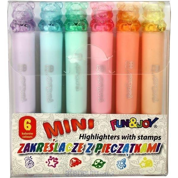 Zestaw 6 zakreślaczy z pieczątkami w rozmiarze mini. Okrągła obudowa zakończona słodkim przeźroczystym misiem w kolorze tuszu. Pod każdym misiem znajduje się pieczątka. Grubość linii pisania 1-4 mm. Pakowane w praktyczne etui ułatwiające przechowywanie.