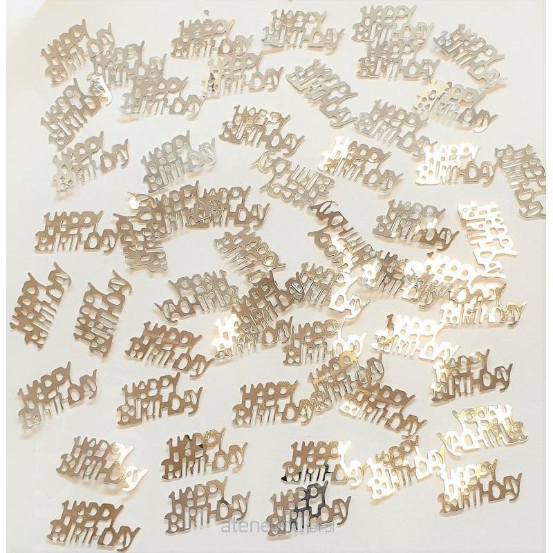 Konfetti metalizowane srebrne "Happy Birthday" CS-709Z