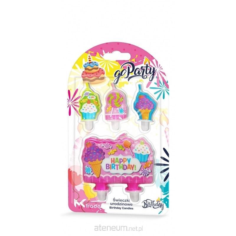 1 x swieczka z napisem Happy Birthday, 3 x świeczka ciastko