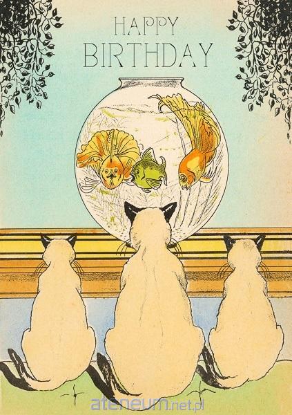 Karnet B6 z kopertą Urodziny Koty i rybki, w środku bez tekstu, wyprodukowany w Wielkiej Brytanii.