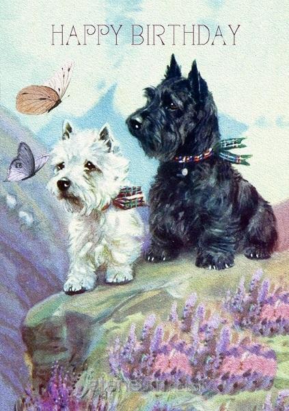 Karnet B6 z kopertą Urodziny 2 Szkockie Teriery, w środku bez tekstu, wyprodukowany w Wielkiej Brytanii.