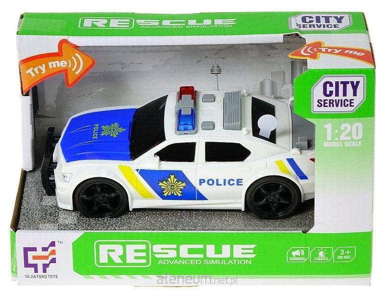 auto policyjne 18,5x7x6cm, światło, dźwięk; 23,5x15,5x10,5cm, W/B