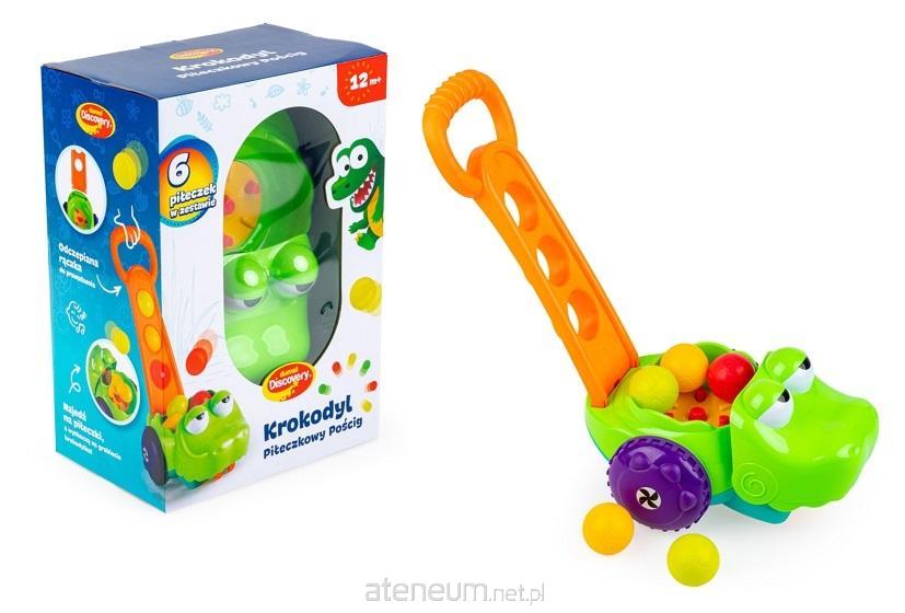 Krokodylek głodomorek połyka piłeczki! Rozrzuć je na podłodze i pozbieraj wszystkie za pomocą tego zabawnego zwierzaka. Możesz się z nim bawić na dwa różne sposoby: statycznie, przekładając piłeczki z grzbietu do otworów, znajdujących się na rączce do prowadzenia, lub dynamicznie, prowadząc krokodylka przed sobą i zbierając nim piłeczki, której to czynności towarzyszą wesołe melodie. Rączka do prowadzenia jest odpinana, co ułatwia przechowywanie zabawki.