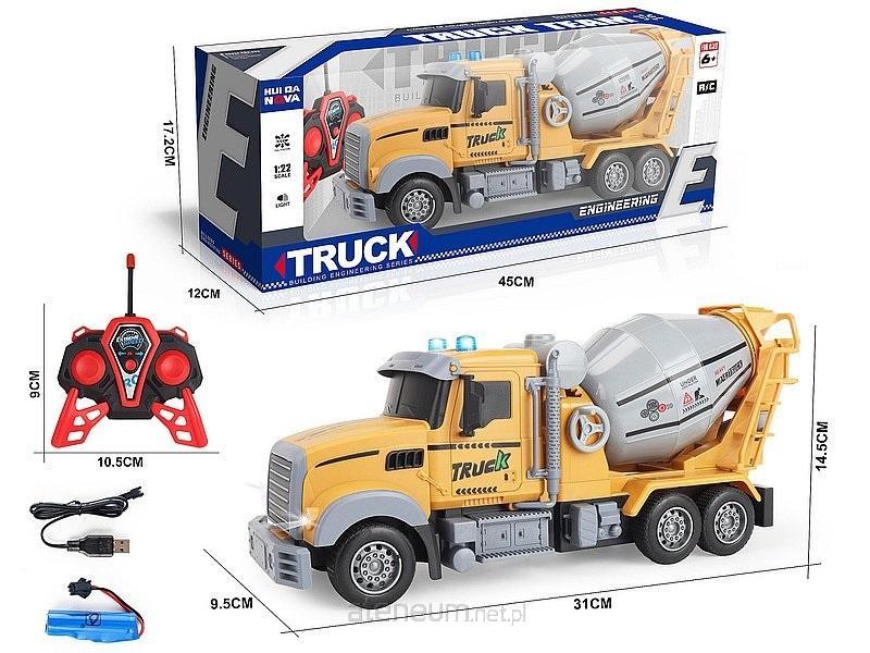 auto betoniarka 1:22 na radio, 4 funkcje, ładowarka USB, 31x14,5x9,5cm; 49x17x12cm, W/B