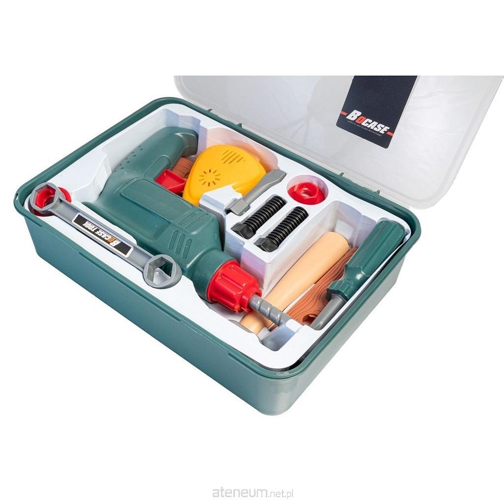 Narzędzia w dużym pudełku to doskonała zabawka dla małego majsterkowicza. Wszystkie narzędzia po zabawie można schować do środka.