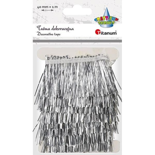 Taśma z frędzlami plastikowymi 40mm 1m srebrna